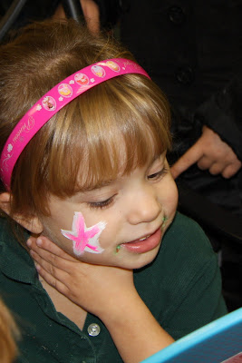 I have no idea why the girls love to get their faces painted every chance we get, but they do: One of the toddler games was balancing an unbreakable ornament on a big spoon while walking through a maze. The girls really enjoyed this and did it several times: